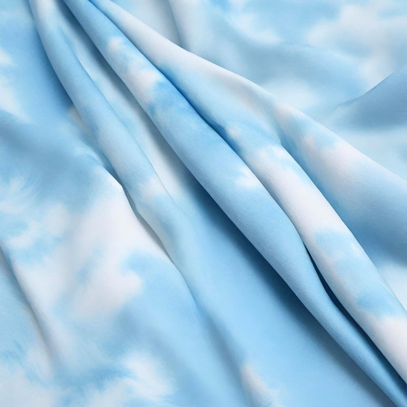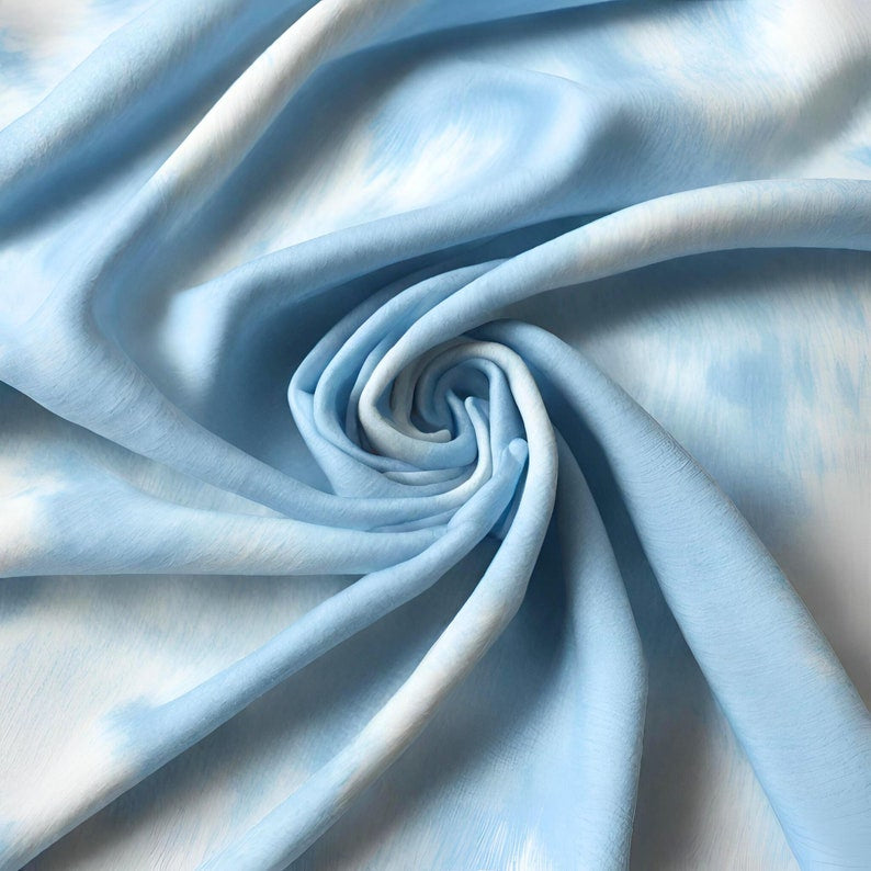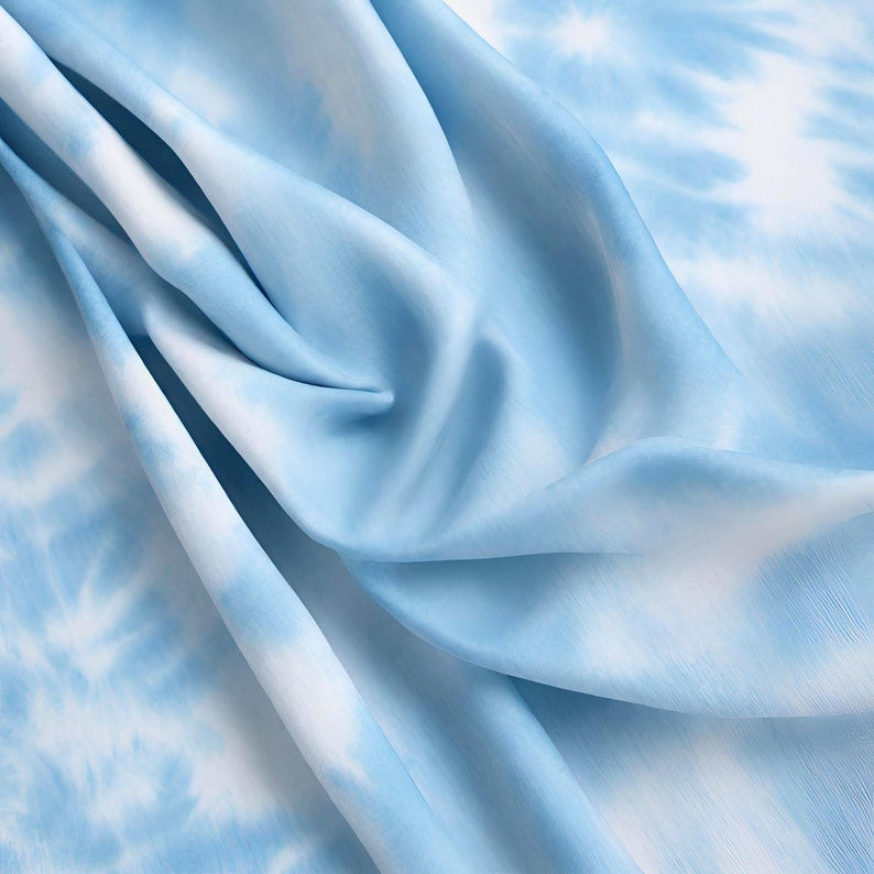 Ideal for various crafting projects, this versatile fabric can be used for creating flowing dresses, lightweight tops, or unique accessories that stand out. Its soft, breathable nature makes it perfect for warm weather garments or cozy loungewear. The beautiful pastel blue tie-dye pattern adds a unique touch, ensuring your creations are one-of-a-kind.
